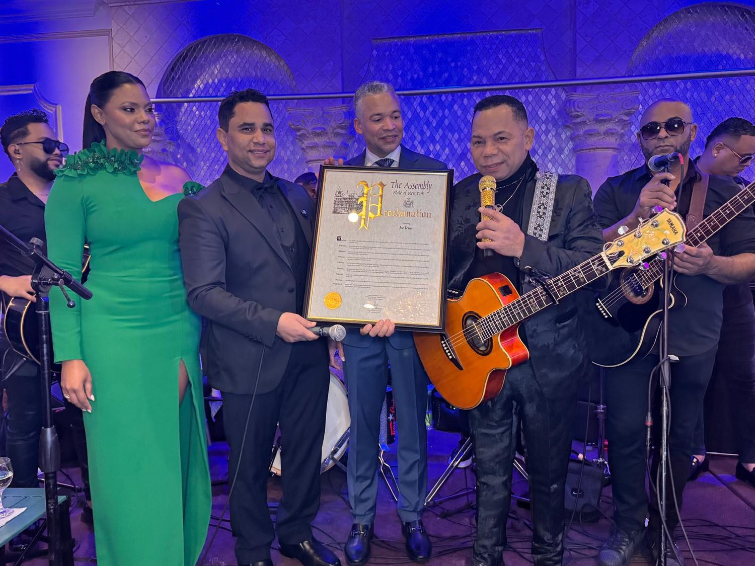 Nueva York. – En una emotiva ceremonia durante la Gran Gala a la Excelencia de la Comunidad Sánchez Ramírez en los Estados Unidos, el reconocido bachatero dominicano Joe Veras fue honrado con una proclama otorgada por el asambleísta George Álvarez (AD78), en reconocimiento a su trayectoria artística y su destacada representación de la identidad dominicana en el mundo.