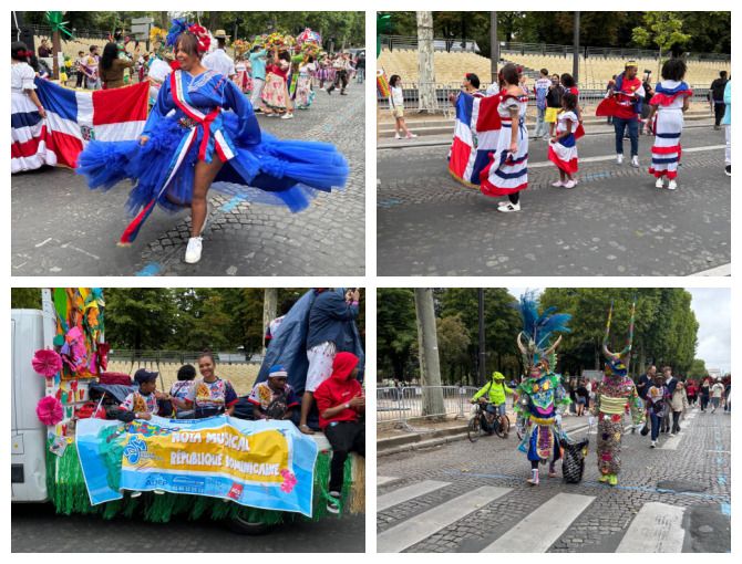 Bajo un cielo veraniego y ante un público diverso, las comparsas dominicanas desfilaron por toda la avenida con trajes típicos, coreografías vibrantes y una energía contagiosa que puso de pie a más de un espectador. La bachata, el merengue y los palos resonaron entre los árboles de la avenida más famosa de París.