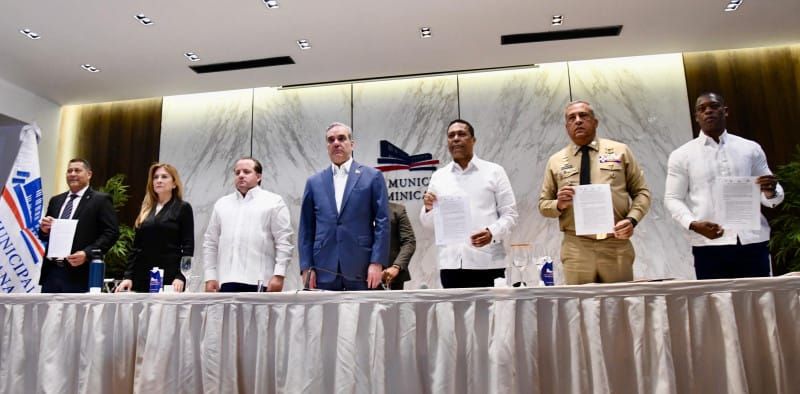 El documento fue firmado por los presidentes de la Liga Municipal Dominicana (LMD), Víctor D’Aza; Nelson Núñez, de la Federación Dominicana de Municipios (Fedomu), y Leoncio José, de la Federación Dominicana de Distritos Municipales (Fedodim), en conjunto con el director general de Migración, vicealmirante Luis Rafael Lee Ballester.