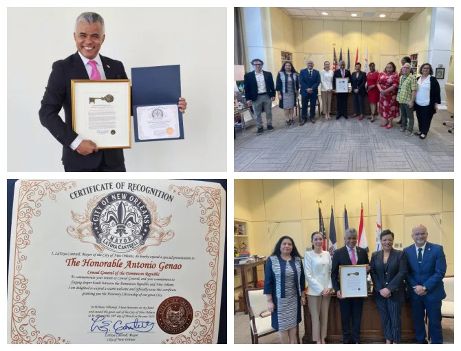 En un emotivo acto encabezado por la alcaldesa LaToya Cantrell, la ciudad de Nueva Orleans otorgó la Llave de la Ciudad y la Ciudadanía Honoraria al Honorable Antonio “Tony” Genao, reconociendo su destacada labor como Cónsul General de la República Dominicana en esa jurisdicción.