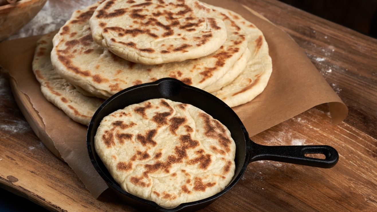3. Calienta una sartén antiadherente a fuego bajo y vierte porciones de la mezcla, dándoles forma de pan pequeño.