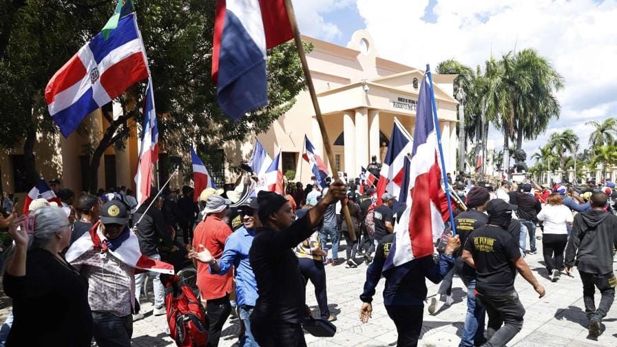 Cientos de ciudadanos dominicanos se congregaron este jueves frente al Palacio Nacional, tras una marcha que partió desde la estación del metro Juan Bosch. El evento fue organizado por La Antigua Orden Dominicana, un colectivo nacionalista que aboga por la protección de los derechos locales.