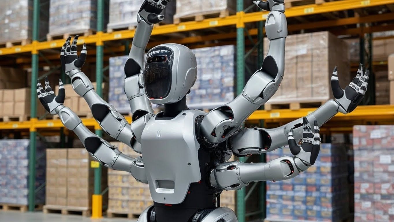 - Seis brazos funcionales: Dos superiores para tareas de precisión y cuatro inferiores para manipular cargas pesadas.